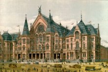 The Music Hall Timeline display is presented on 4' by 8' panels lining the sides of the Central Parkway corridor, covering the history of the building and the musical organizations performing therein, from the origin of the building in 1878 to 1999. A large mural of Music Hall as originally conceived in 1878 is displayed on the east end of the corridor, and is visible to concertgoers as they enter the corridor from the Central Parkway end.